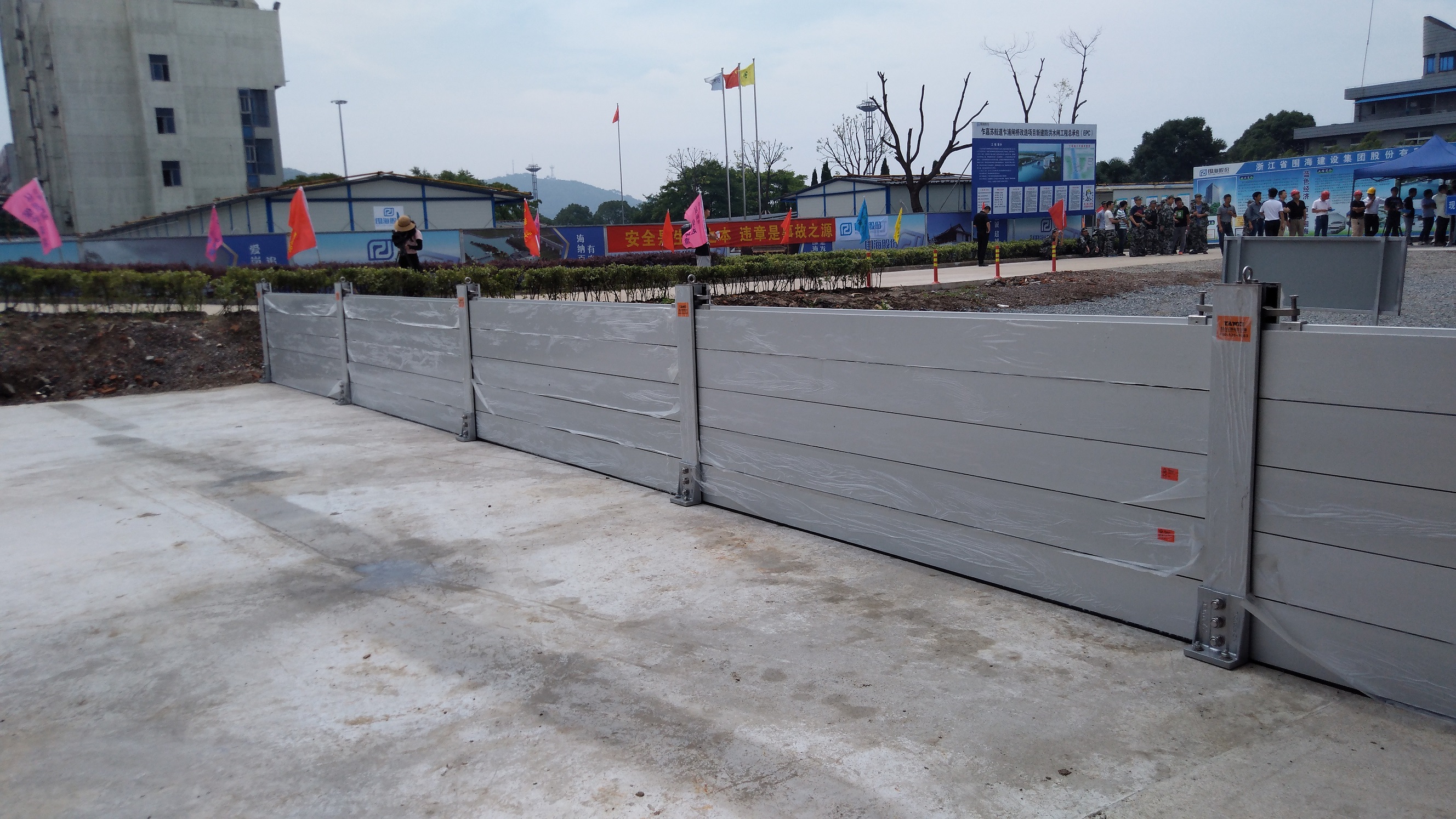 本公司生產(chǎn)的組合式移動(dòng)防洪墻參加了嘉興港區(qū)2017年度防汛搶險(xiǎn)演練,現(xiàn)場(chǎng)演示了防洪墻的安裝和拆卸過(guò)程,受到了到場(chǎng)的領(lǐng)導(dǎo)和嘉賓的一致肯定。